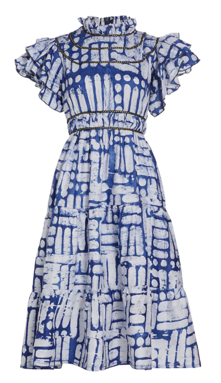 We’re super smitten with all of the darling details on this charming maxi dress! It incorporates so many of our most-favorite features, including puff sleeves, block-print-inspired motifs and a tiered full skirt! You know we just adore a versatile find, and we can’t wait to mix up the styling of this dress for a variety of occasions! The way we’ve shown it here (paired with our go-to sun hat and sandals) is perfect for everything from the beach to brunch! You could just as easily elevate the look for evening events by swapping out the flat sandals for a heeled pair and punching up the drama with gold + stone statement earrings!